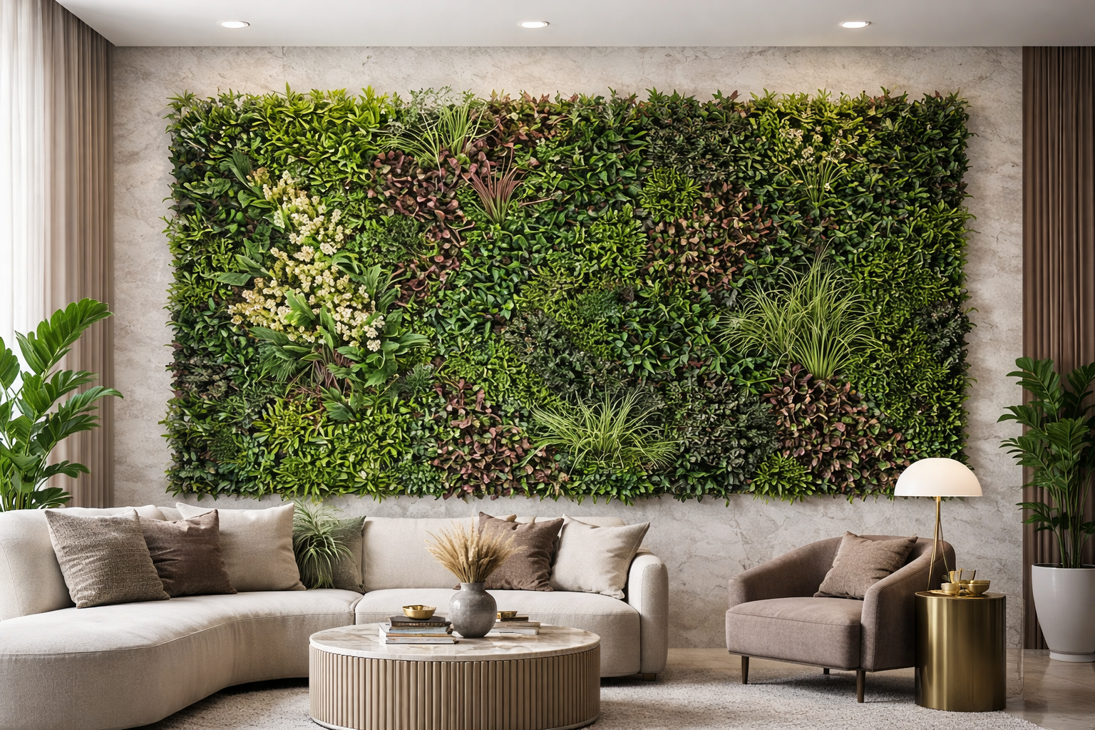 Sì, piante artificiali e pareti verdi sono spesso combinate per creare ambienti completi e coerenti, aumentando l’effetto scenografico dello spazio.